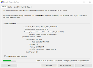 اكتب هذا الامر في منفذ الاوامر تعطيك ملخص عن كل مكون من مكونات حاسوبك dxdiag :